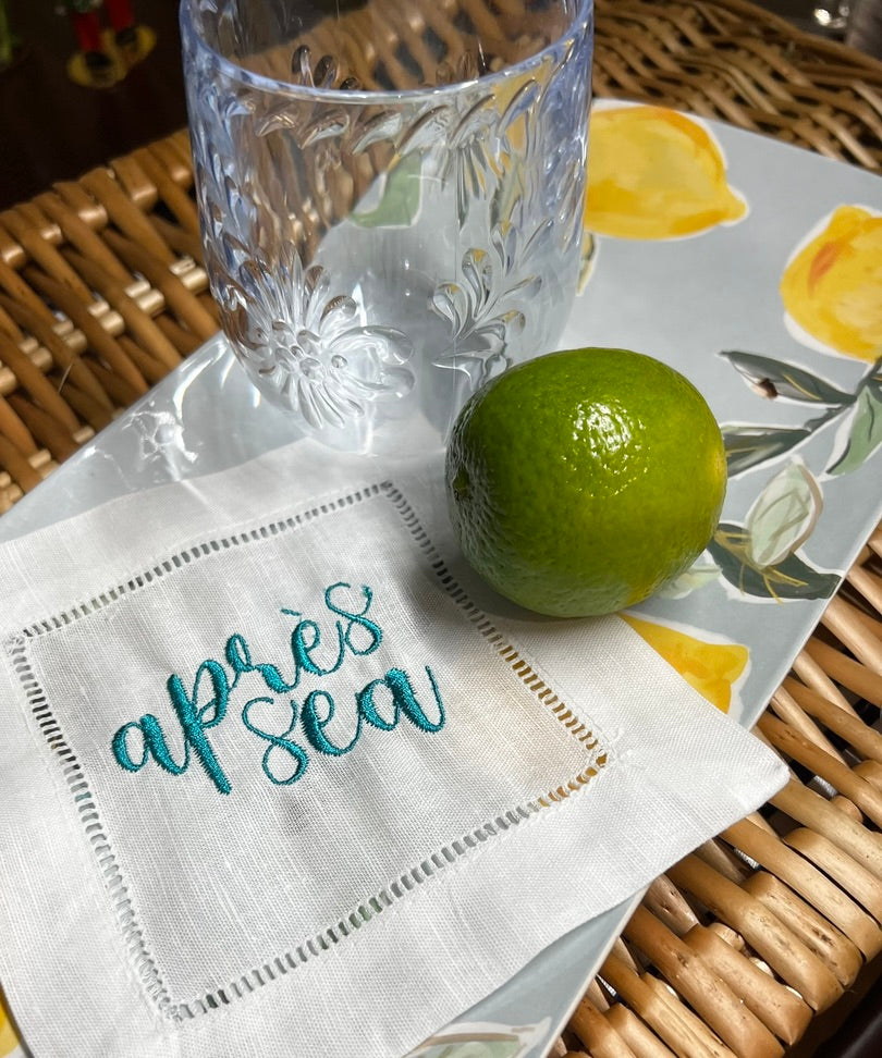 Heirloom quality, Custom Embroidered, Linen Cocktail Napkins