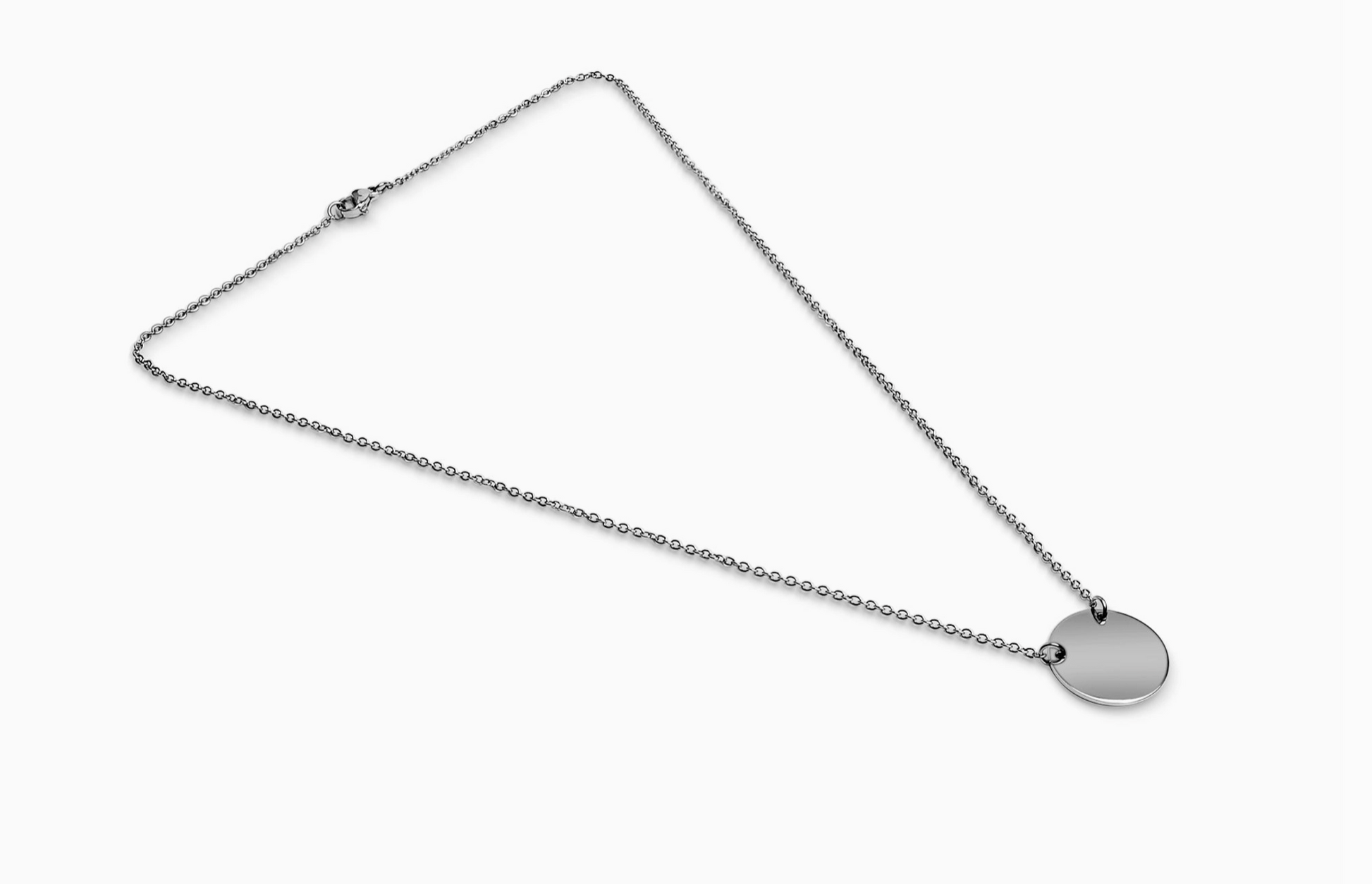 This Stainless Steel Blank Circle Necklace offers a versatile, timeless design. It is equipped with a lobster claw clasp for convenient fastening and the circular pendant, ideal for engraving or stamping a personalized touch, hangs from a delicate chain. Perfect for everyday wear or special occasions, this elegant piece is sure to be a winning choice, whether as a present or personal indulgence.