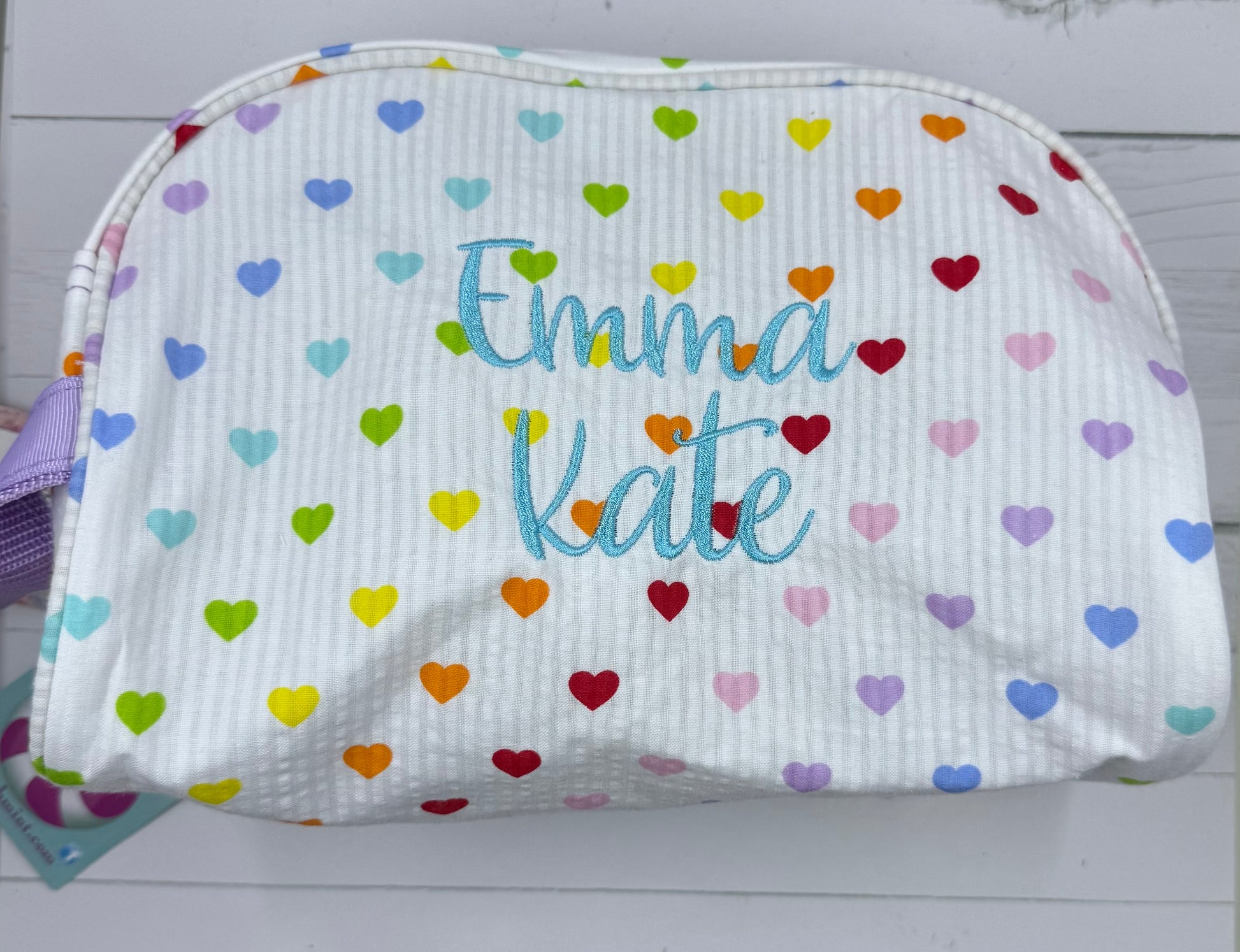 Our newest and cutest travel bag with zipper. Perfect for makeup, brushes, toiletries, small school supplies etc. They make great gifts too!